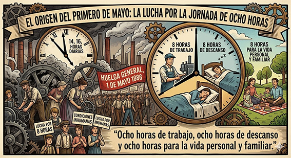 El Día Internacional del Trabajo tiene su origen en una de las luchas más importantes del movimiento obrero mundial: la conquista de la jornada laboral de ocho horas.
